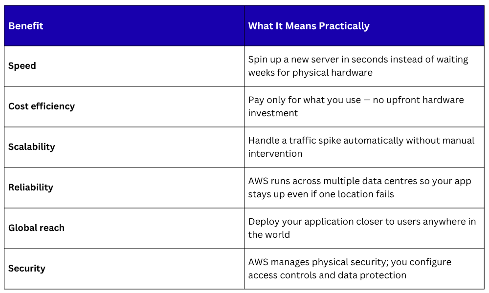 Cloud computing changed this completely. It means accessing computing resources — servers, storage, databases, networking, software — over the internet, on demand, and paying only for what you use.