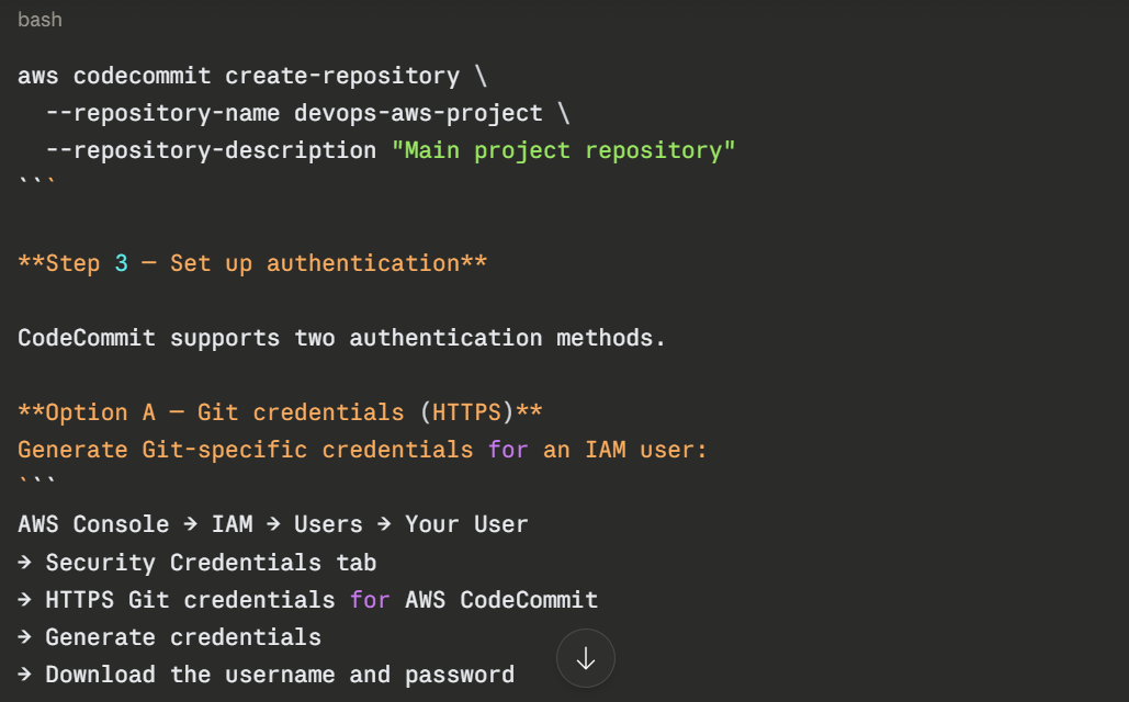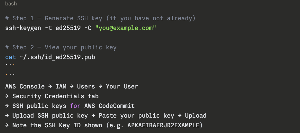 **Step 1 — Enable CodeCommit in your AWS account**