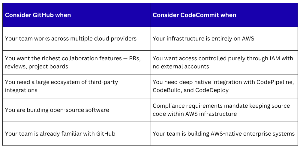 Choosing Between GitHub and CodeCommit