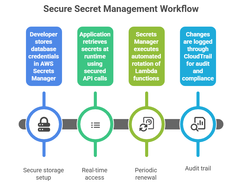 3. Automatic Secret Rotation: Set up Lambda-based rotation to periodically refresh credentials without manual intervention.