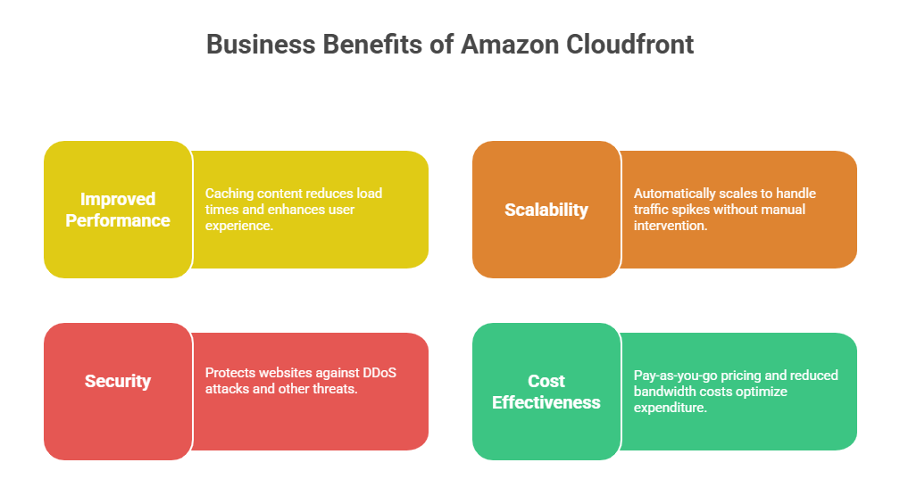 CloudFront caches content at edge locations globally, reducing latency by serving content closer to end-users.