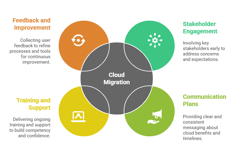 Adopting the cloud alters how teams work and how IT services are delivered. Effective change management mitigates resistance and ensures smooth transitions through: