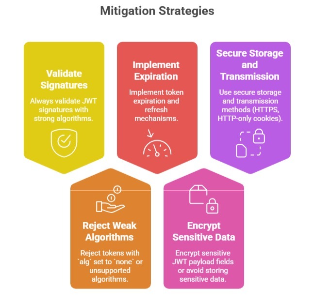 Exploitation Scenarios: It Involves insecure token handling can lead to severe security breaches. Attackers may forge tokens to grant themselves administrative privileges or hijack active sessions by reusing captured tokens. By manipulating token claims, they can also gain unauthorized access to protected APIs, enabling further compromise of application data and functionality.