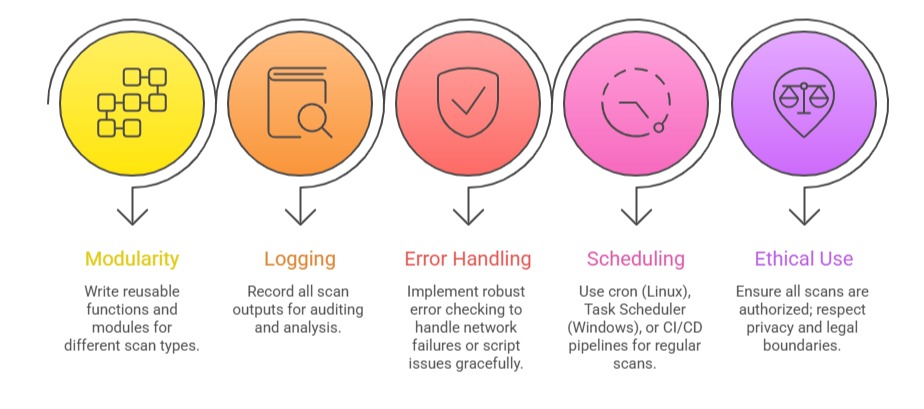 Common scripting languages like Python, Bash, and PowerShell provide robust capabilities for automating a variety of scanning tasks, from port and service discovery to vulnerability enumeration.