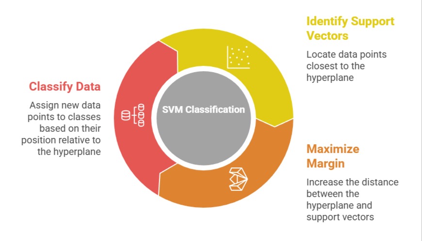 For example, in email spam classification, SVM ensures spam and non-spam emails stay clearly distinguished by maximizing the separation margin.