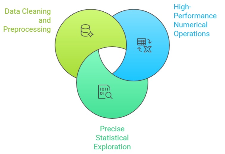 For datasets requiring mathematical transformation before being converted into Pandas or ML-friendly formats, NumPy provides a foundational preprocessing stage.
