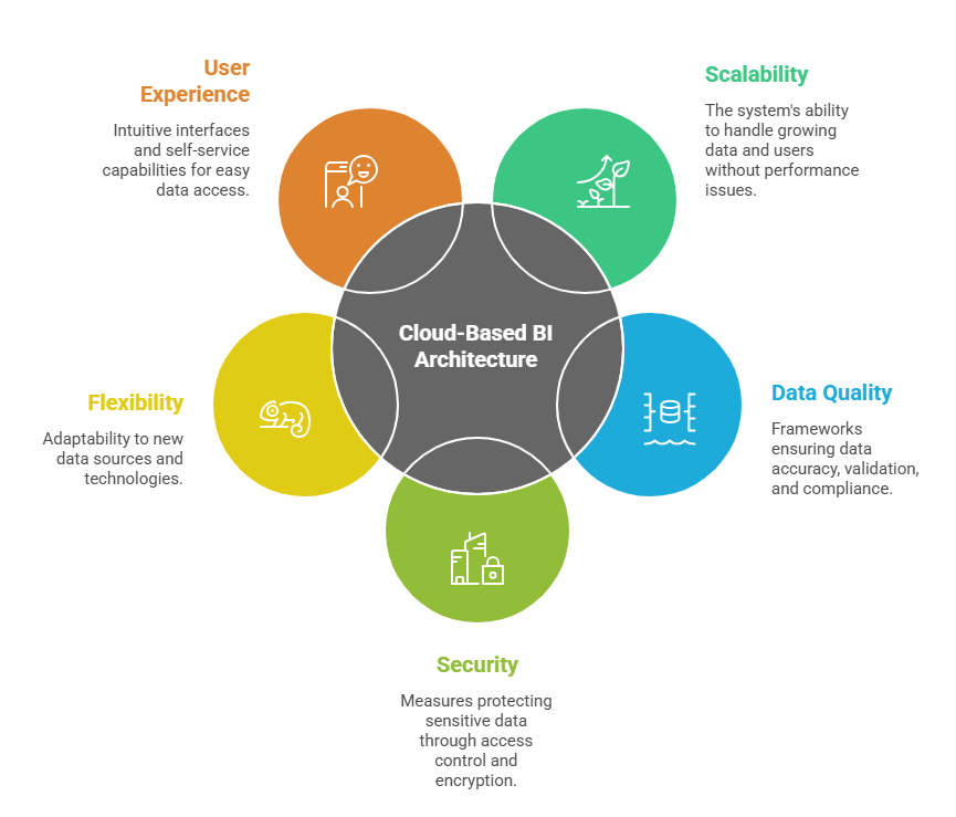 A well-architected BI system enhances data quality, reduces latency, and enables seamless user access. Important architectural considerations include: