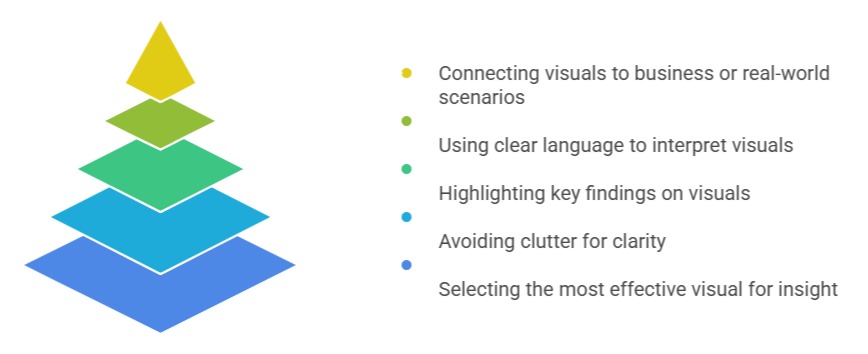 By linking visuals to business impact, analysts ensure the audience not only sees the insight but understands its relevance. Context turns numbers into narratives and visuals into strategic guidance.