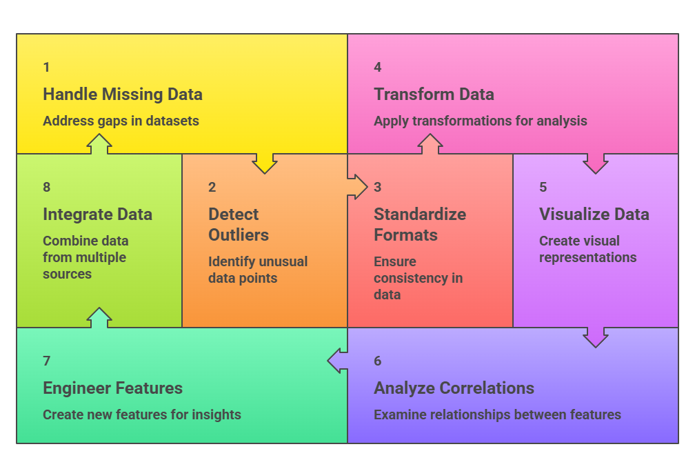 Effective preprocessing and EDA allow healthcare organisations to identify potential risks, personalise care strategies, and improve operational efficiency.