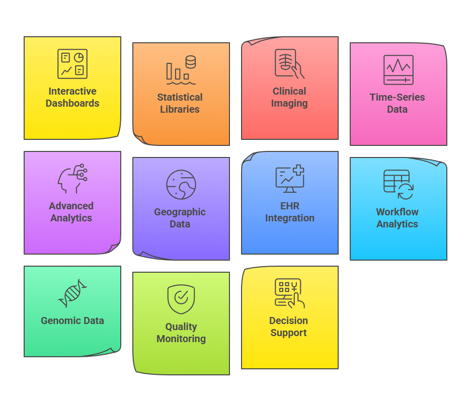 Healthcare-specific tools such as EHR dashboards, clinical decision support visualization modules, imaging viewers, and HL7-FHIR visualization plugins make the process even more meaningful.