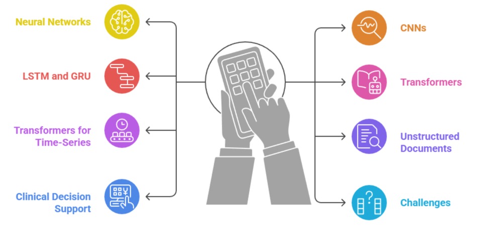 Neural networks and transformer-based architectures have become fundamental tools in modern healthcare AI, enabling highly accurate analysis of clinical text, medical records, physiological signals, and time-series patient data.