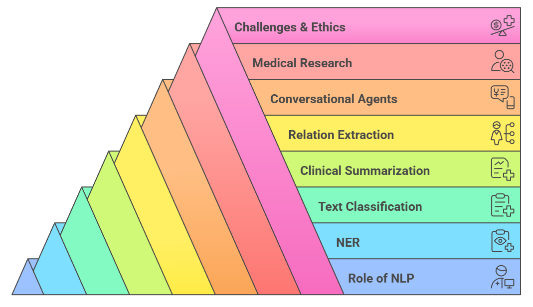 Natural Language Processing (NLP) plays a critical role in healthcare by converting vast amounts of unstructured clinical text into meaningful, analyzable insights.