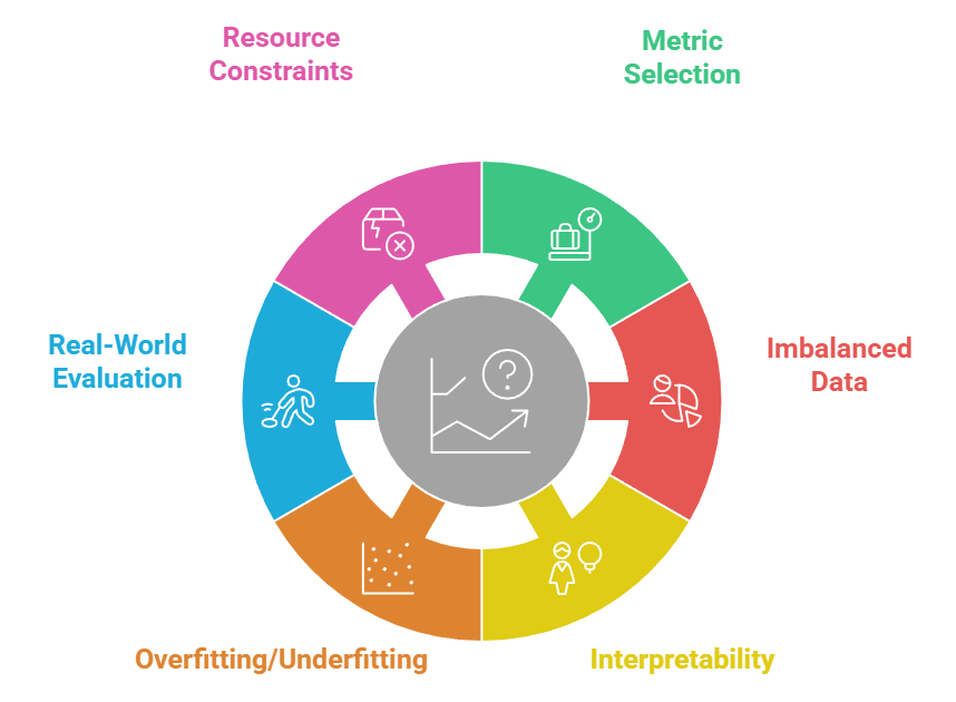 Choosing the right evaluation metric can be challenging, especially in multi-class, multi-label, or imbalanced datasets.
