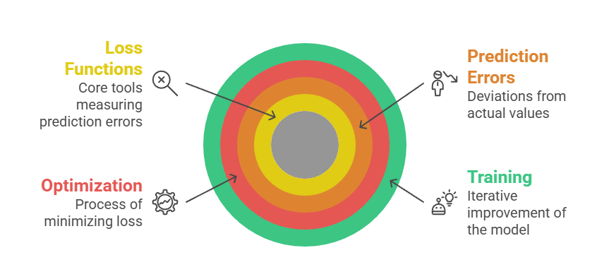 Loss functions are mathematical tools that measure how far the model’s predictions deviate from the actual target values.