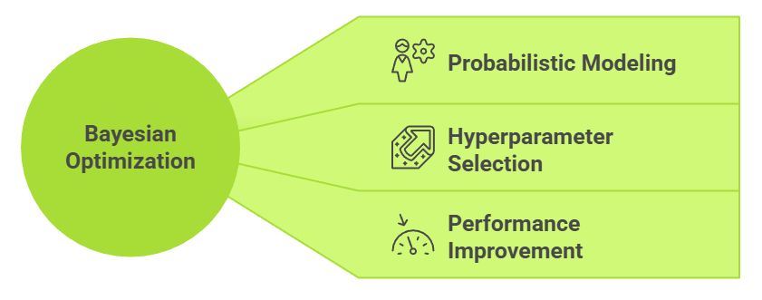 Through acquisition functions such as Expected Improvement or Upper Confidence Bound, Bayesian optimization strategically chooses hyperparameters that balance exploring new areas and refining known promising regions.