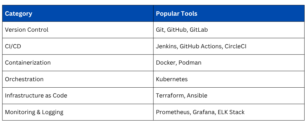 Popular Tools Associated with DevOps