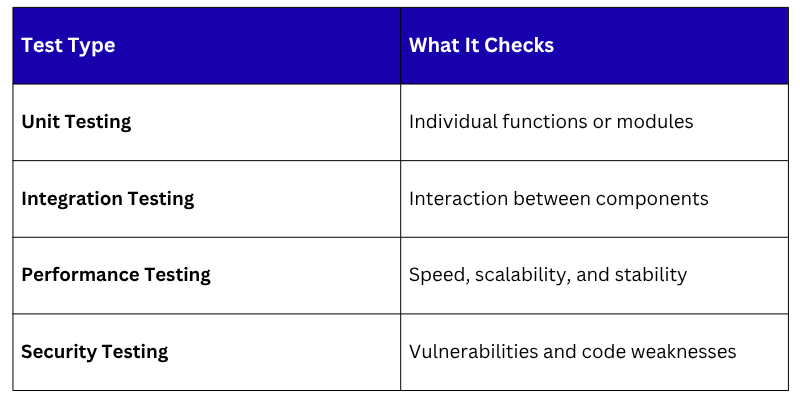 Common Tools: Selenium, JUnit, TestNG, SonarQube, OWASP ZAP