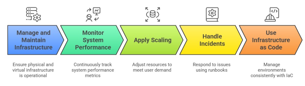 Once software is deployed, the operations team ensures that it runs smoothly in the production environment.