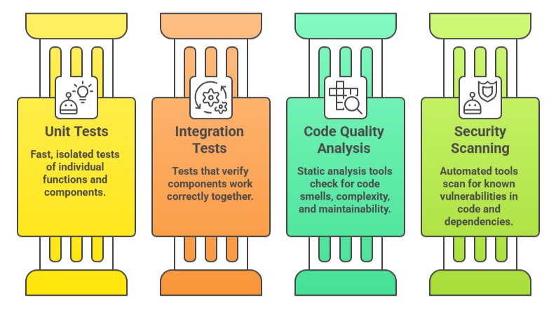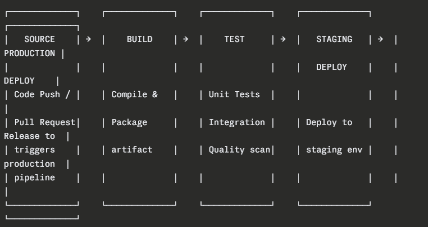 Think of it as a series of checkpoints that code must pass through before it is considered ready for users. Each checkpoint serves a specific purpose, and together they form a reliable, repeatable path from code to production.