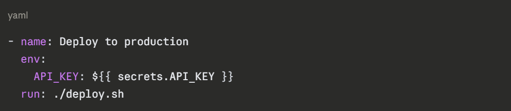 In GitHub Actions, secrets are defined in the repository settings and referenced like this: