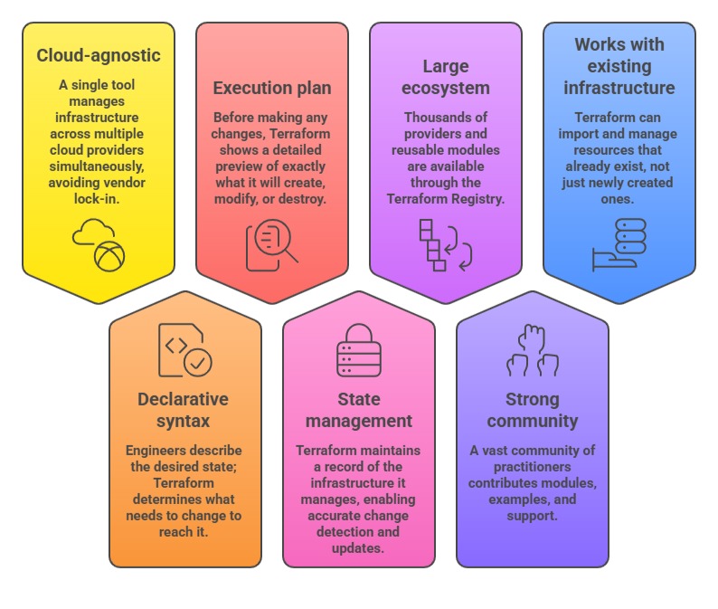 Several characteristics have made Terraform the dominant IaC tool in the industry: