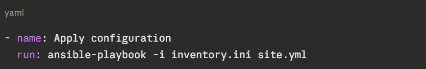 A GitHub Actions workflow step running an Ansible playbook looks like this: