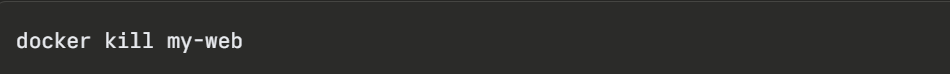 Forcefully stopping a container immediately — sends a SIGKILL signal with no grace period: