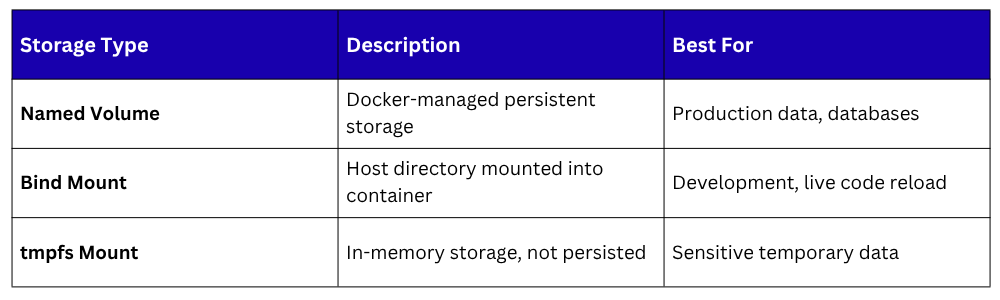 By default, all data written inside a container is lost when the container is removed. Volumes provide persistent storage that exists independently of any container — data survives container restarts, removals, and recreations.