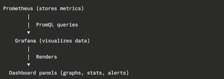Grafana takes that data and transforms it into rich, interactive dashboards that give teams immediate visual insight into system health.