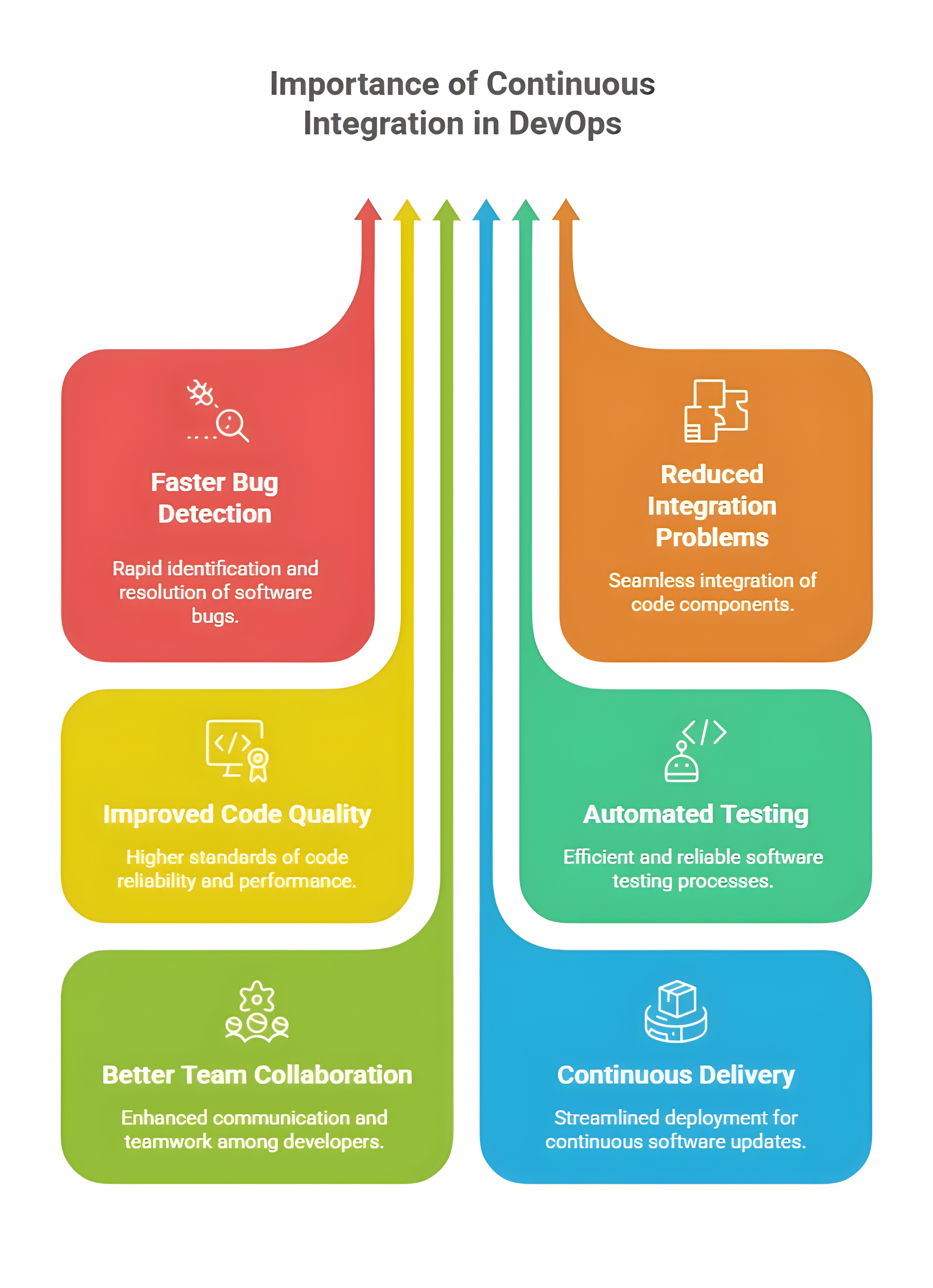 DevOps involves rapid development cycles, which increases the chances of introducing low-quality or unstable code. Continuous Integration ensures that code quality is maintained by running automated tests, code analysis tools, and security scans. These checks make sure that only clean, secure, and reliable code is merged into the main branch.