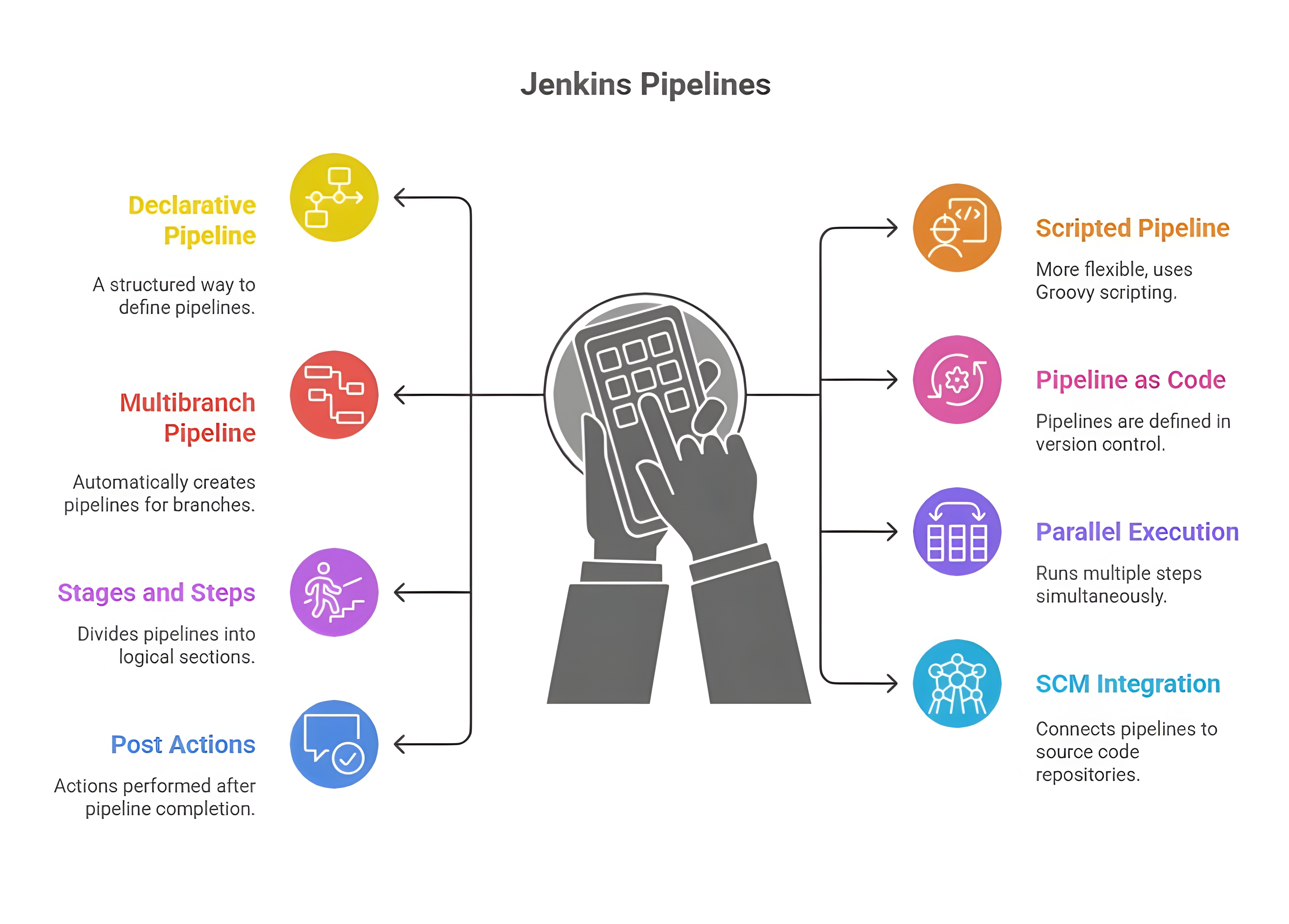 A Jenkins Pipeline represents the entire automation workflow of a software project, from the moment a developer pushes code to the repository until the final deployment to production or staging environments. It is designed to handle simple as well as highly complex workflows, including multi-stage processes, parallel tasks, conditional logic, error handling, manual approvals, and integration with various tools and platforms. Because pipelines are defined as code, they can be easily shared, reviewed, modified, and reused across different projects, which is a major advantage in large organizations following DevOps practices.