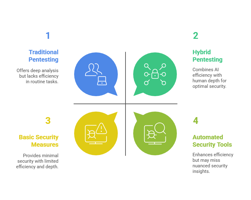 The most effective security programs often blend traditional and AI-augmented pentesting. AI serves as a force multiplier, automating routine tasks and providing insights, while human experts apply critical thinking, creativity, and ethical judgment to interpret findings and plan remediation. This hybrid approach enhances efficiency without sacrificing depth or control.