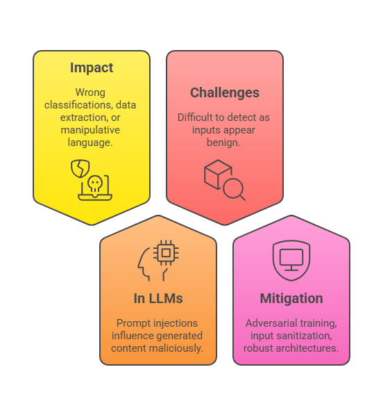 Impact: Can degrade model accuracy, introduce backdoors, or bias outputs towards attacker objectives.