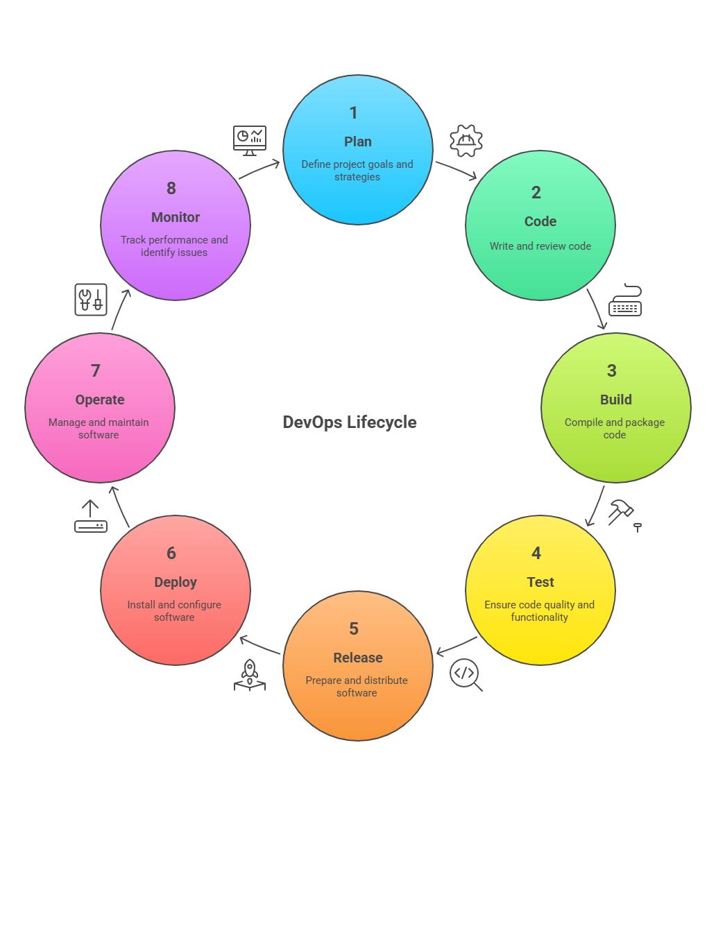 Finally, the DevOps lifecycle fosters a culture of learning, experimentation, and innovation. By connecting all stages and integrating feedback, teams can learn from failures, refine processes, and enhance performance continuously. Without a lifecycle, the cultural benefits of DevOps—shared responsibility, collaboration, and innovation—would be difficult to achieve, limiting the long-term success of DevOps initiatives.
