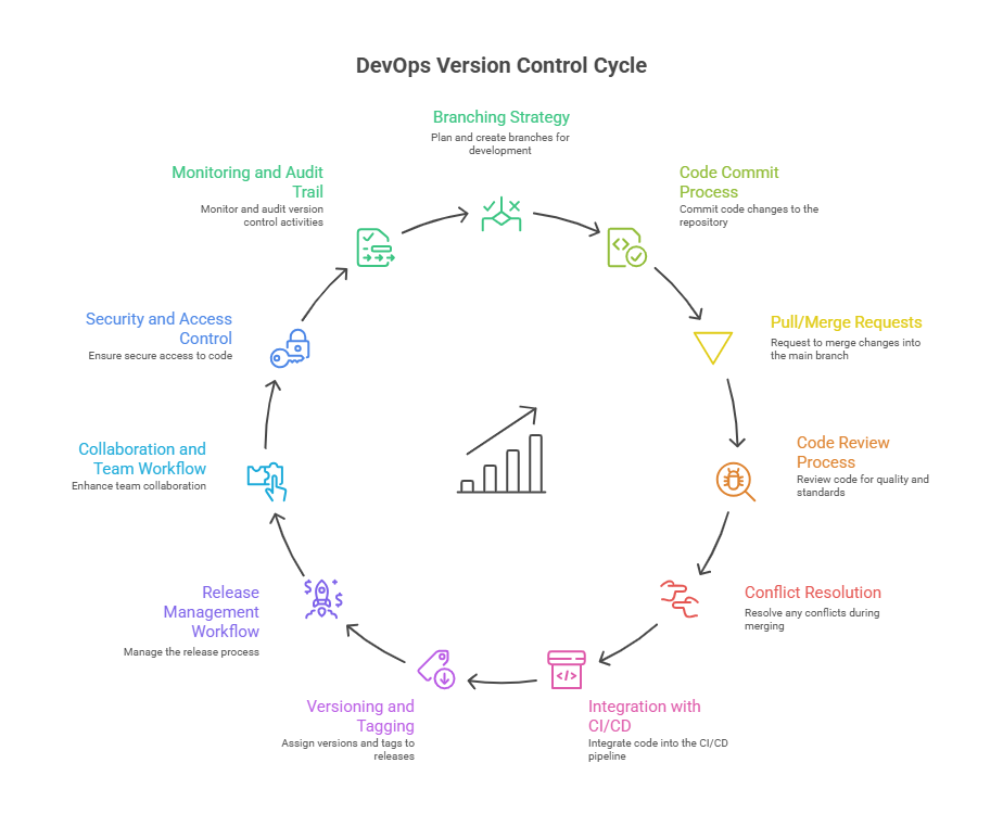 Version Control plays an integral role in the continuous feedback loop of DevOps. Each change committed to the repository is tested, validated, and monitored in real time, allowing teams to respond quickly to performance metrics, bugs, or integration issues.