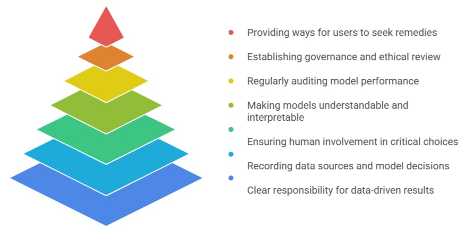 Accountability demands that humans review automated decisions, especially in sensitive sectors like healthcare, finance, and law enforcement.
