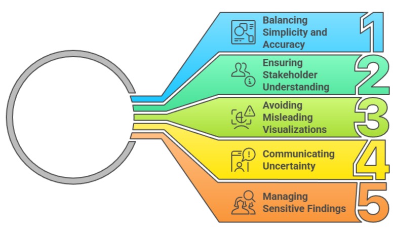 Ethical communication also requires preventing bias amplification, contextualizing insights properly, and ensuring that non-technical stakeholders can interpret results without confusion.