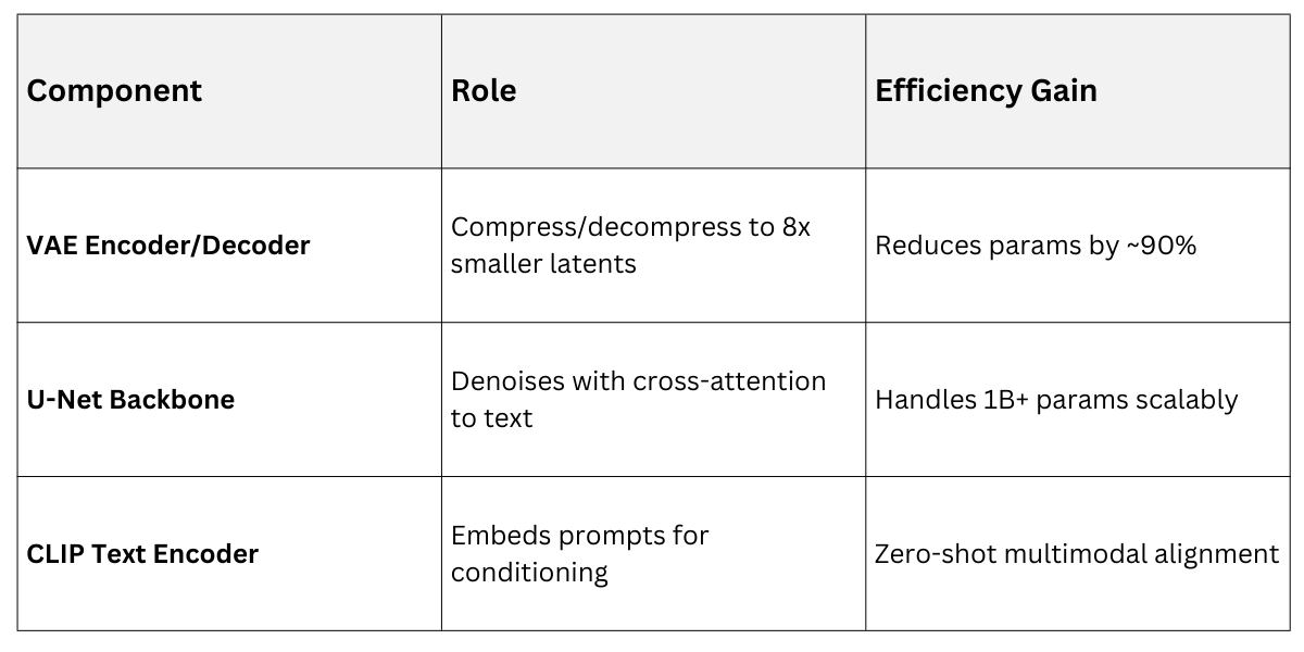 The magic lies in the variational autoencoder (VAE) pipeline, which encodes high-res images into compact latents for diffusion, then decodes them. This decoupling lets the diffusion model focus on semantics, not fine details.