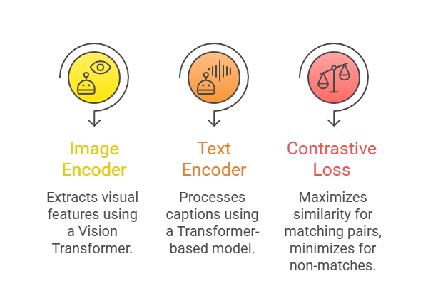 It encodes images and text into a shared embedding space, enabling zero-shot tasks without task-specific fine-tuning.