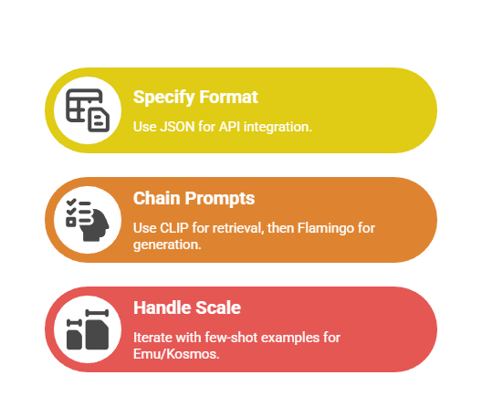 Effective prompting maximizes these models' potential, especially in generative pipelines. Start with descriptive, modality-aware prompts: "Given this scatter plot [image], list top correlations."