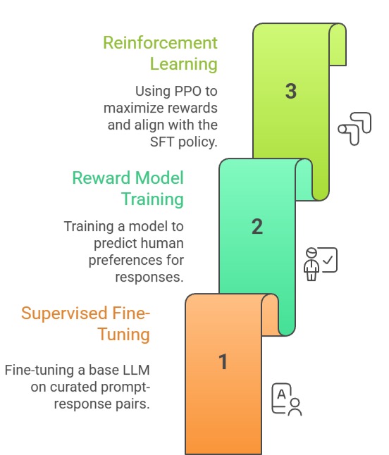ppo_trainer.step(prompts, responses, rewards)This setup ensures the model generates preferred outputs without collapsing into repetitive or unsafe behaviors.