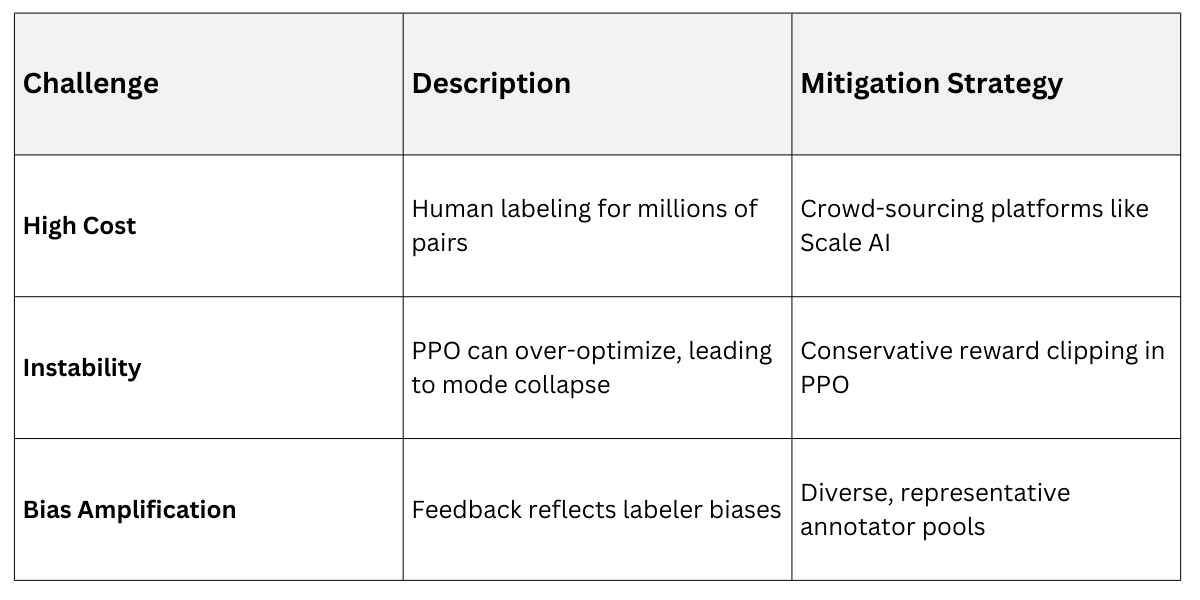 However, RLHF faces scalability hurdles—collecting human feedback is expensive, and PPO training is computationally intensive, often requiring clusters of GPUs.
