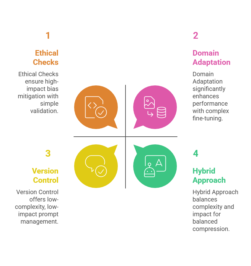 Example in a data science course bot: User query on "ML model evaluation" compresses to essentials, refines with CoT for explanations, cutting response time from 8s to 2s.