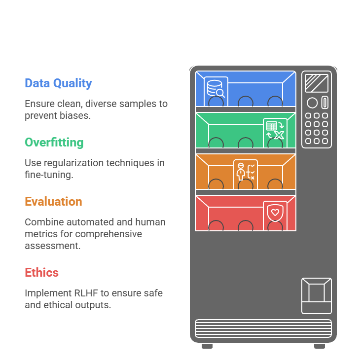 Adaptation faces hurdles like data scarcity and hallucination. Mitigate with curation and feedback loops.