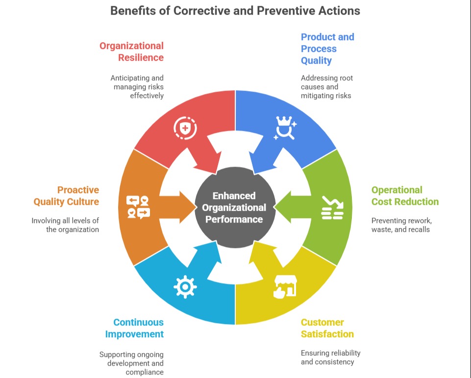 These actions are designed to identify, address, and eliminate the causes of existing or potential nonconformities to improve processes, prevent problems from recurring, and enhance overall organizational performance.