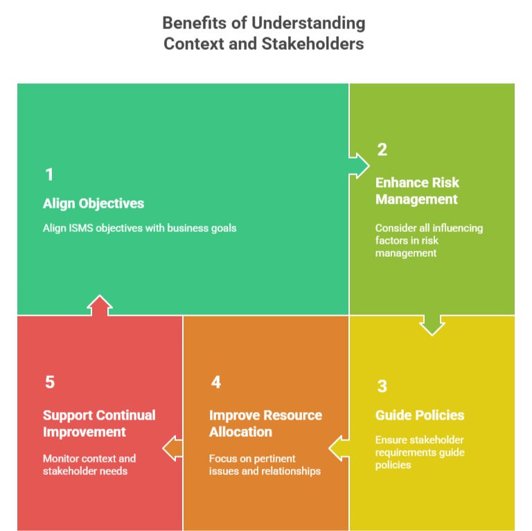 Identifying these issues enables the organization to tailor its ISMS to its specific operating environment, concentrating resources on areas of greatest impact or vulnerability.