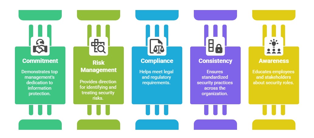 1. Demonstrate Commitment: A clearly articulated policy shows top management’s dedication to protecting information, which helps foster a culture of security awareness and accountability.