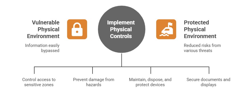 Physical controls protect the physical environments where information and information processing facilities reside. Without physical safeguards, technical and procedural controls can be easily bypassed. Important physical controls include: