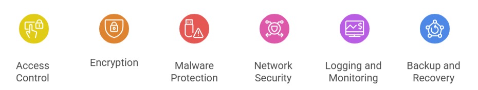1. Access Control: Restricting user access through authentication mechanisms such as passwords, multi-factor authentication (MFA), and role-based permissions.