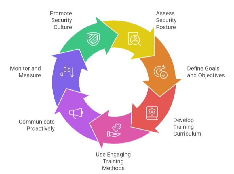 6. Monitor, Measure, and Iterate: Track metrics like training completion rates, phishing simulation outcomes, incident reports, and employee feedback. These insights allow adjustment of content and methods to address emerging risks and improve effectiveness.
